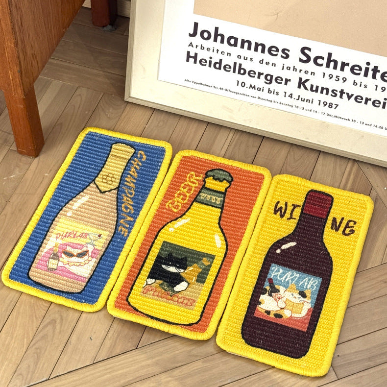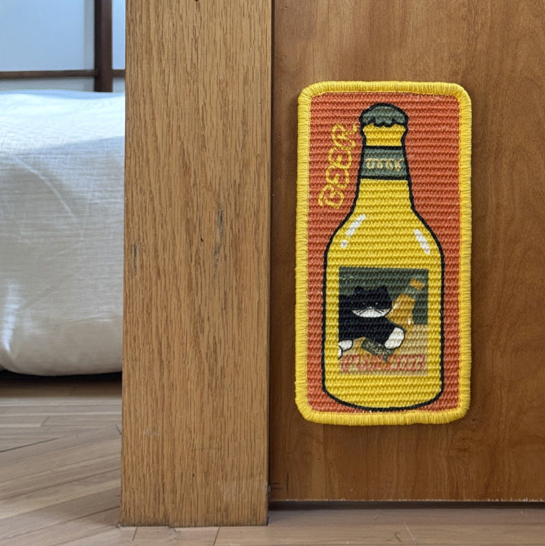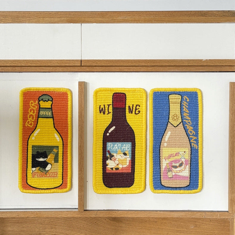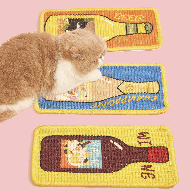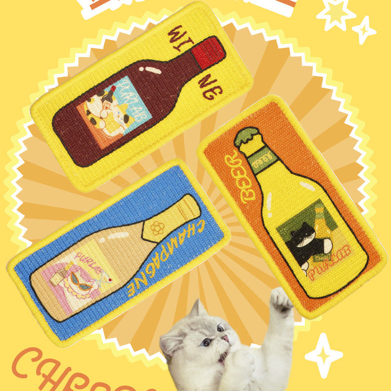 お部屋に置くだけで楽しくなるユニークなボトルデザイン。家具を傷つけず、愛猫の**「ガリガリしたい」本能**を優しく満たす、天然サイザル麻を使用した丈夫な爪とぎボードです。